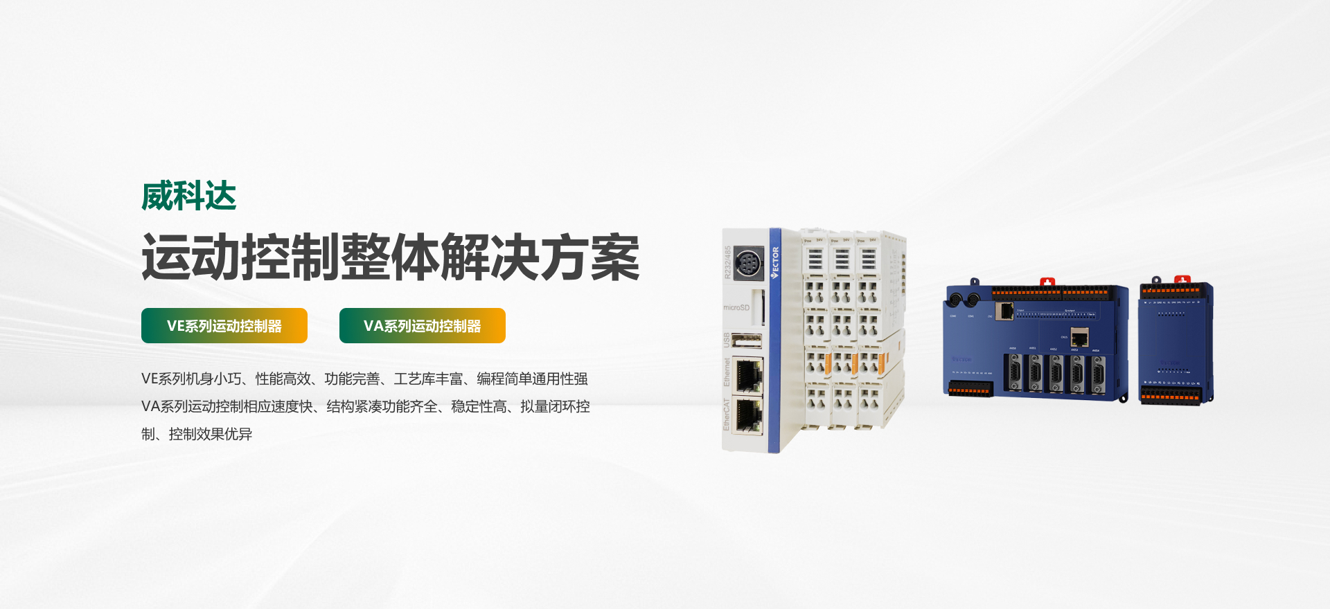 威科達(dá)是一家專注于運動控制器和伺服系統(tǒng)的研發(fā)、生產(chǎn)和應(yīng)用的國家高新技術(shù)企業(yè)。18年來一直致力于為中高端設(shè)備制造企業(yè)提供專業(yè)化、個性化、簡單化、適合化的運動控制整體解決方案。